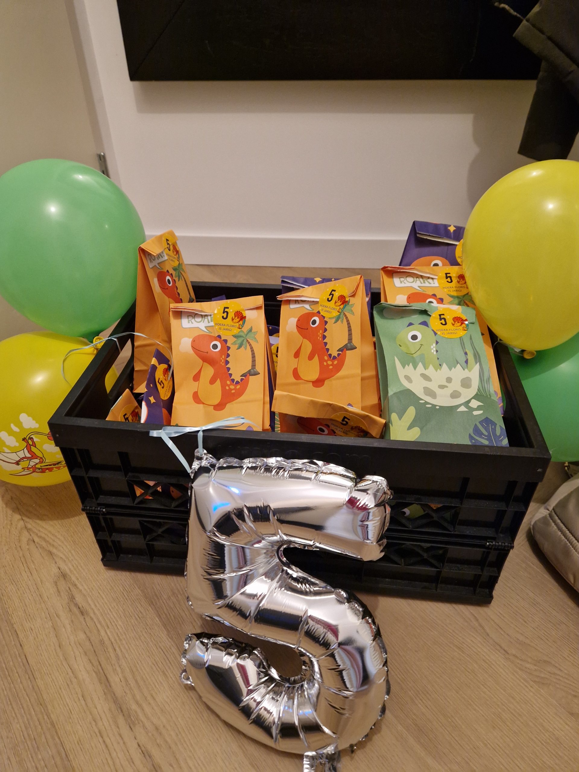 Dit jaar hadden we gekozen voor het thema Dino’s… Uiteraard bestelde ik dit jaar weer op Aliexpress. Even snel een rondje daar zoeken en ik besloot al snel dat ik uitdeel zakjes wilde maken, gevuld met een mix van dino items en lekkere dingen.