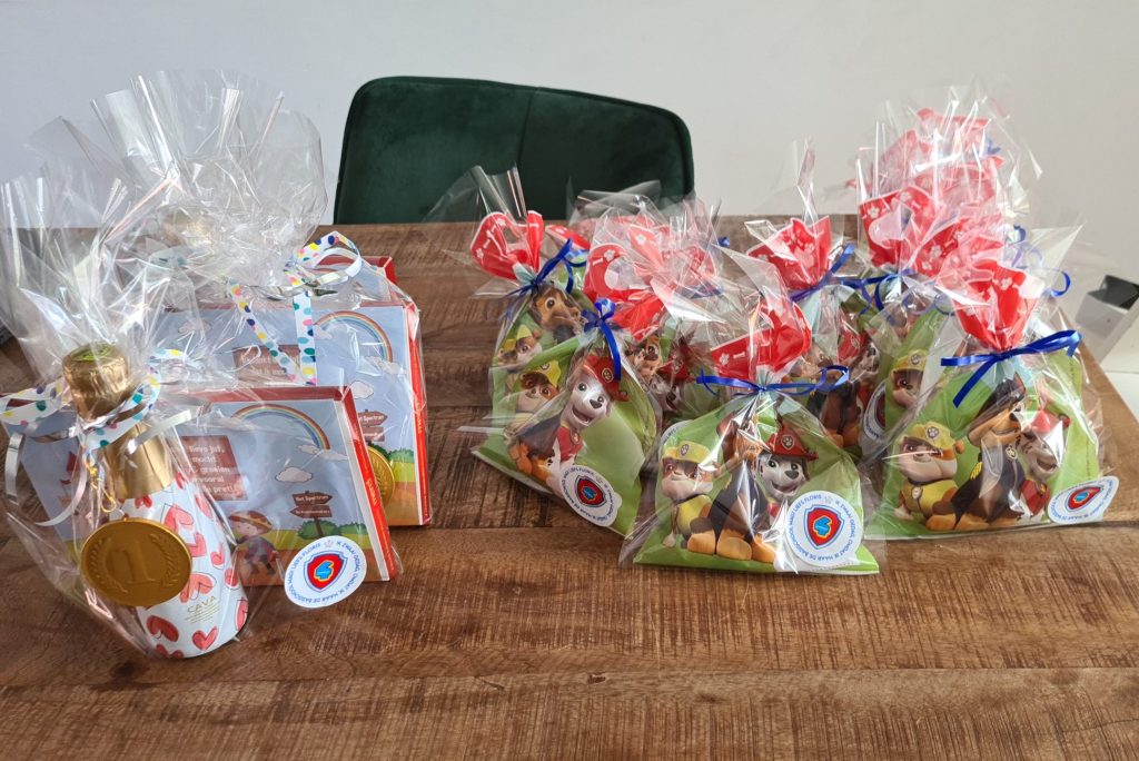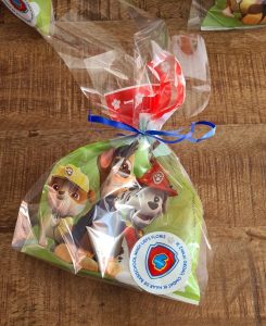 De uitdeelzakjes deed ik in een mand met wat Paw Patrol ballonn eraan, de ballonnen had ik ruim op tijd bij Aliexpress gekocht.